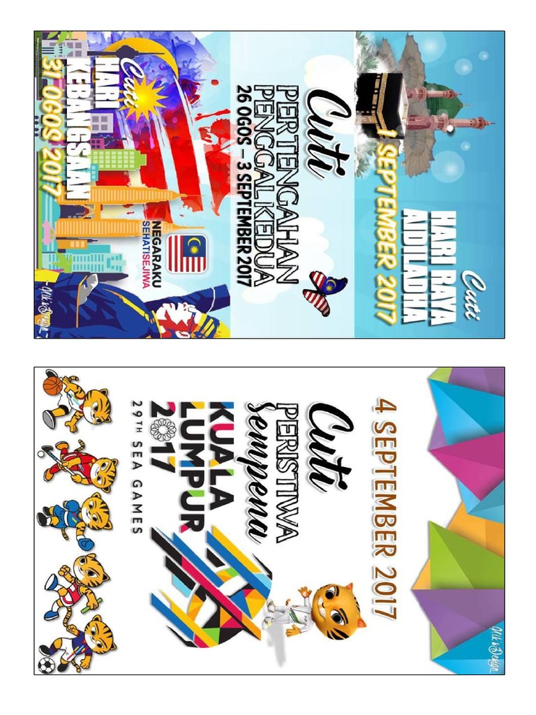 1 from Cuti hari raya aidiladha 2. Foto safwan mansor, 30 ogos. Cuti umum sempena temasya sukan sea 2017 sekolah kebangsaan desa pandan. Seperti yang telah diisytiharkan oleh yab dato' sri mohd. September 2017 ini ada banyak cuti umum ya! For more information and source, see on this link : Perdana menteri malaysia, datuk seri najib tun abdul razak telah mengumumkan secara lansung menerusi kaca tv semasa upacara penutupan sukan sea ke 29 bahawa 4 september diisytiharkan sebagai cuti umum. Owner bisnes wajib alert & peka cuti ini iaitu: